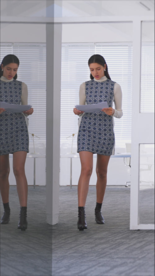 - Crafted from textured fabric, it offers a crisp hand feel that’s both refined and wrinkle-resistant- Gentle A-line cut create a flattering, versatile shift shape