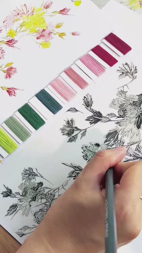 This exclusive print was inspired by a quiet longing for nature — a sense of calm, clarity, and subtle romance. We chose a fabric that mimics the raw texture of linen, creating a soft, organic canvas for painterly expression.